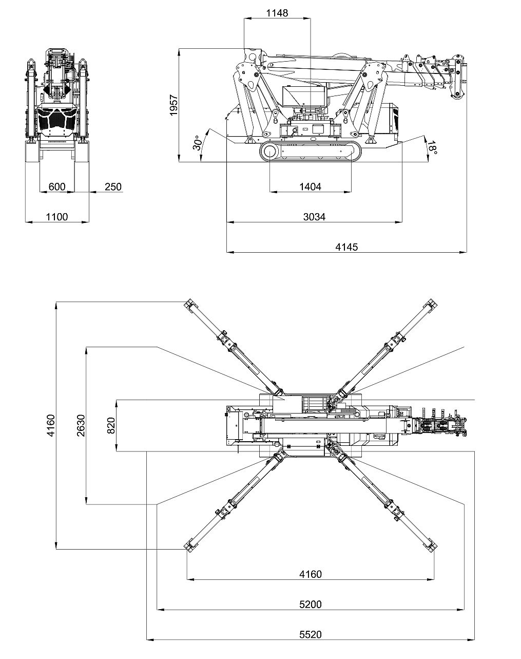 4150 x 1100 x 1960 мм