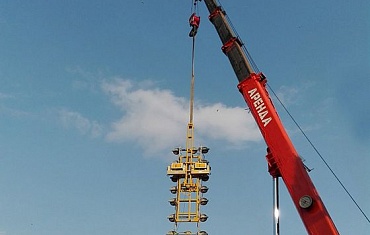 Специалисты АРЛИФТ произвели остекление временного испытательного стенда у делового комплекса «Лахта центр» с помощью вакуумного захвата PANNKOKE.