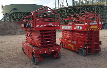 Самоходные электрические ножничные подъемники Арлифт на стройке горно-обогатительного комбината в Казахстане.