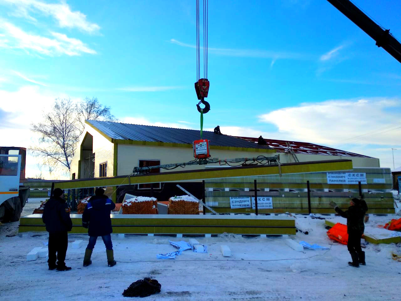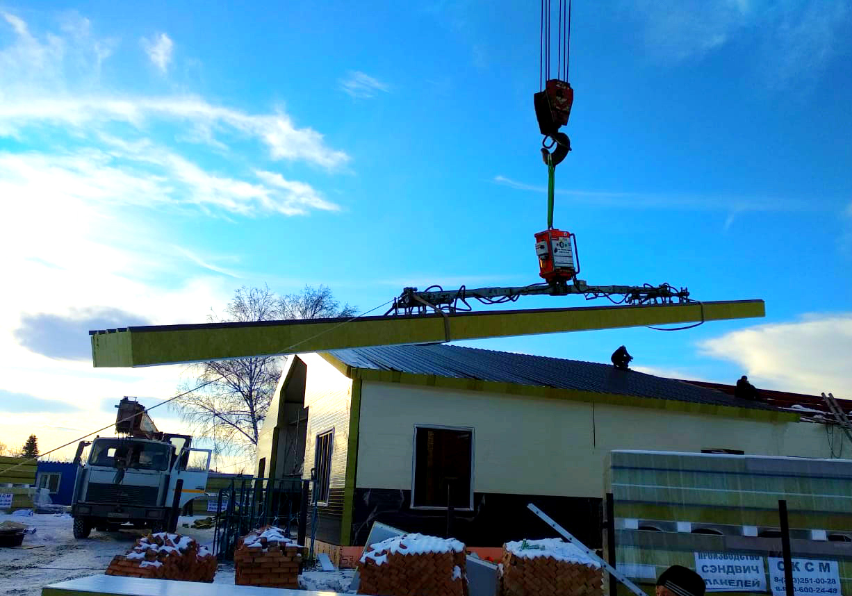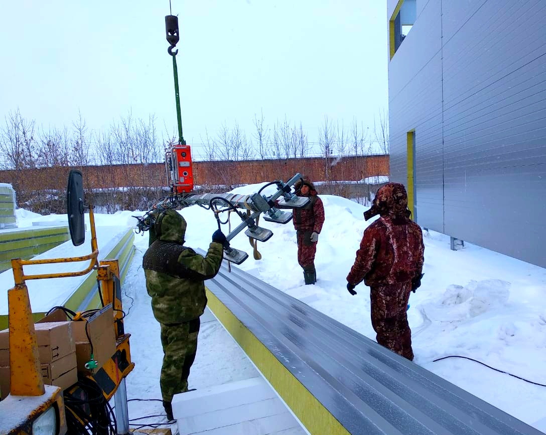 Наши объекты - Монтаж кровельных сэндвич-панелей вакуумным захватом в Новосибирске