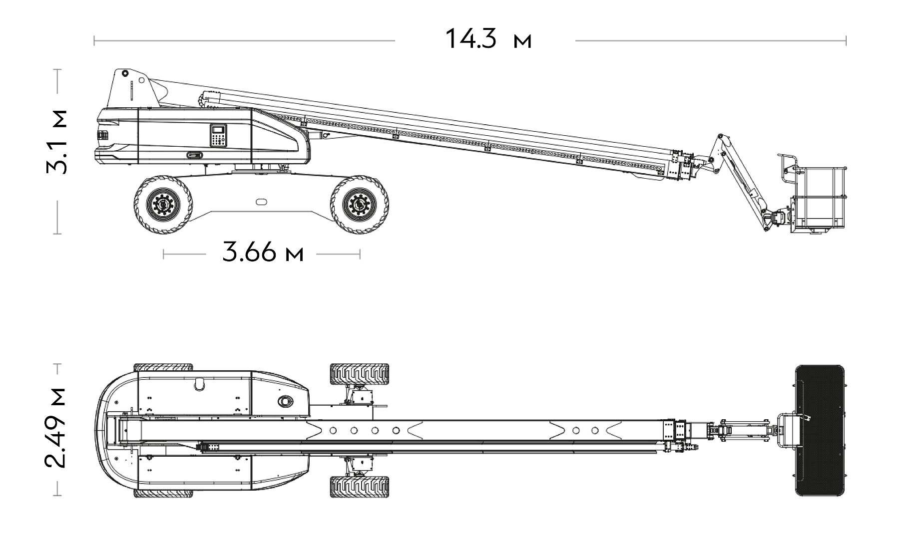14300 х 2490 х 3100 мм